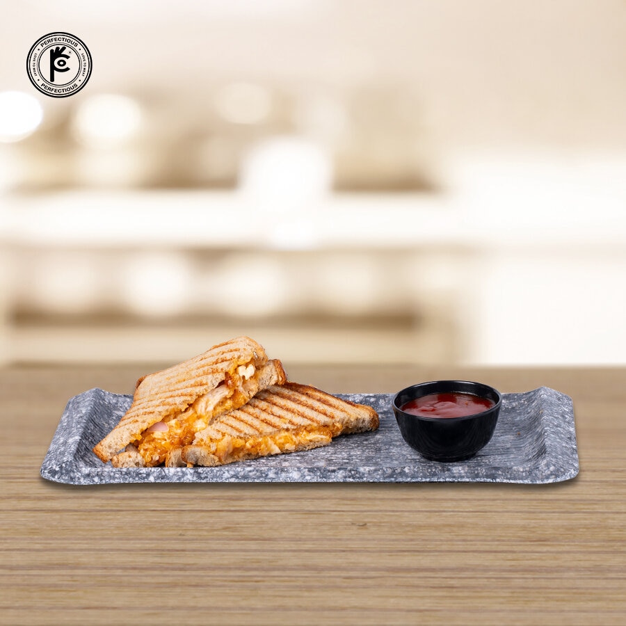 Treat yourself to the deliciousness of a Chicken Grilled Sandwich, featuring tender spiced chicken and fresh veggies nestled between golden, crispy slices of grilled bread. This ready-to-eat delight is perfect for a quick snack or a wholesome meal, offering the perfect balance of flavor and convenience.